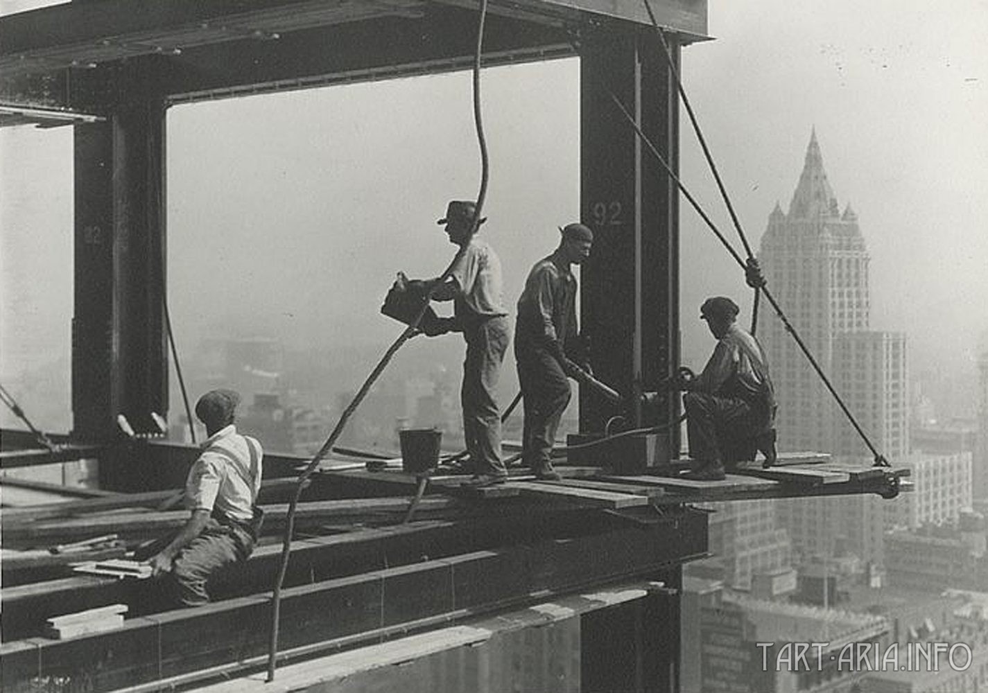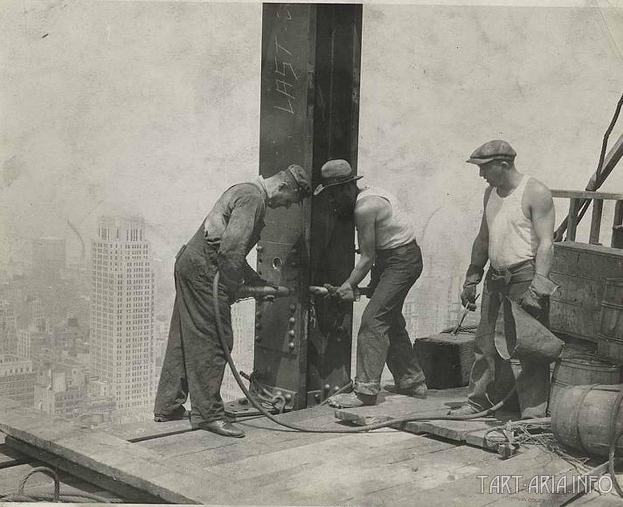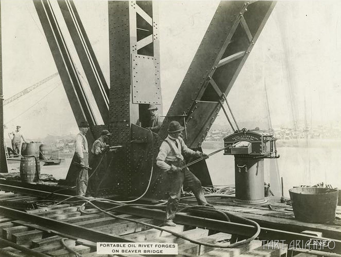 Как ни странно, в архивах свободного доступа имеется очень мало фото от 19 века по построению стальных конструкций на клёпках. Хотя фото самих завершённых конструкций имеется от того же периода очень много. И не менее присутствуют фото простых слесарей, ведущих прочую работу. Сам по себе этот факт слегка насторожил. Но что-то всё-таки нашлось.