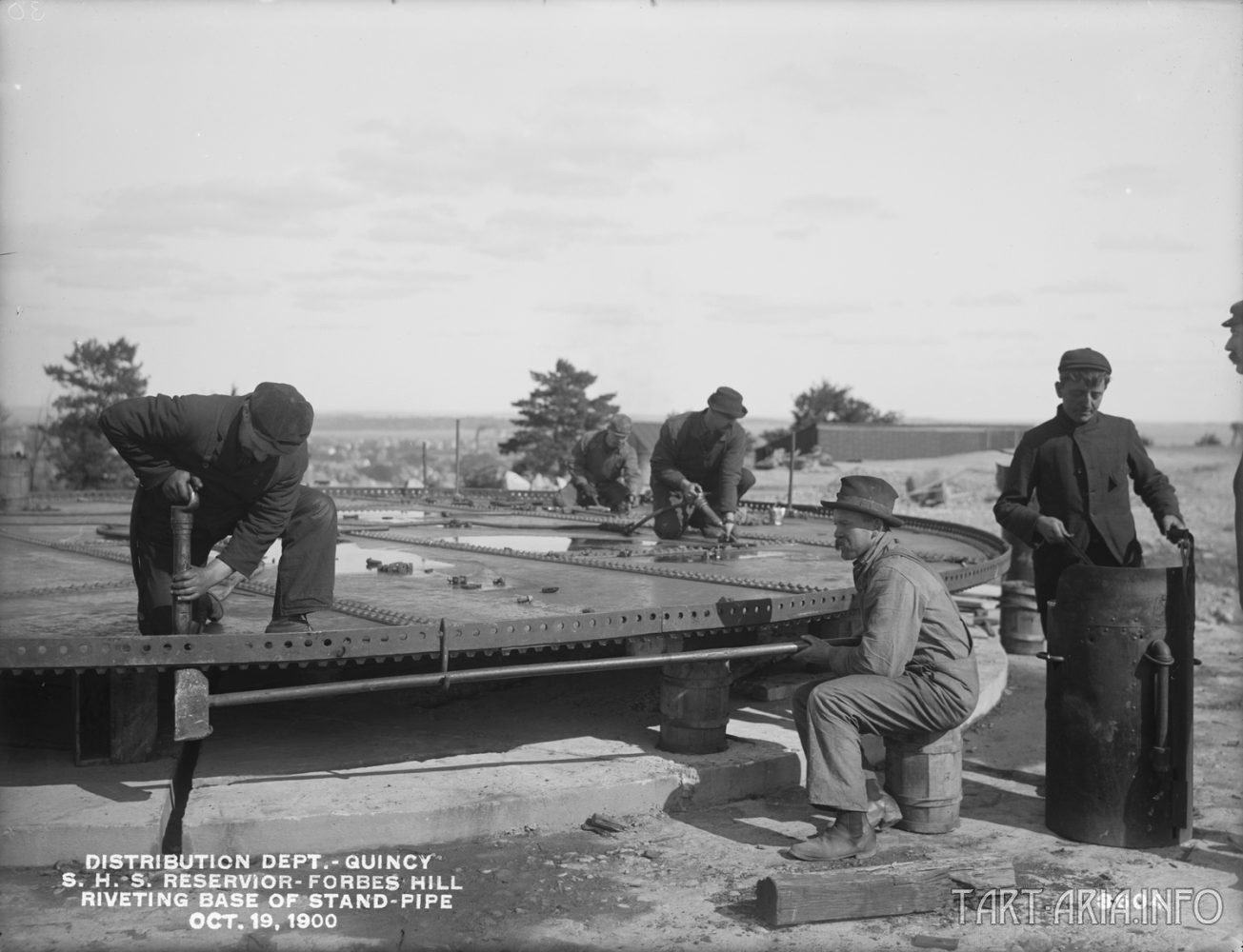 И скорее всего, фотографы фотографировали в данном случае процесс строительства резервуара не стесняясь. Просто фото, не предназначенные для общественности, были удалены из свободного обращения. И было это уже в 20 веке. Оставили только те фото, которые были удачно выдернуты из контекста и по которым сложно что-то понять. Всё продумано. А как же клёпки?
