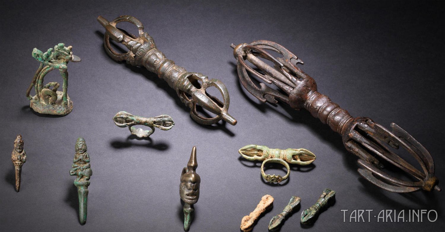 Присоединение ваджр на колокола скорее всего тоже изобретение совсем недавнее. На многих артефактах, продающихся на серьёзных аукционах, видно невооруженным глазом, что колокол и ваджра состоят из разных материалов, и даже соединены не совсем качественно. Кстати, о колоколах.
