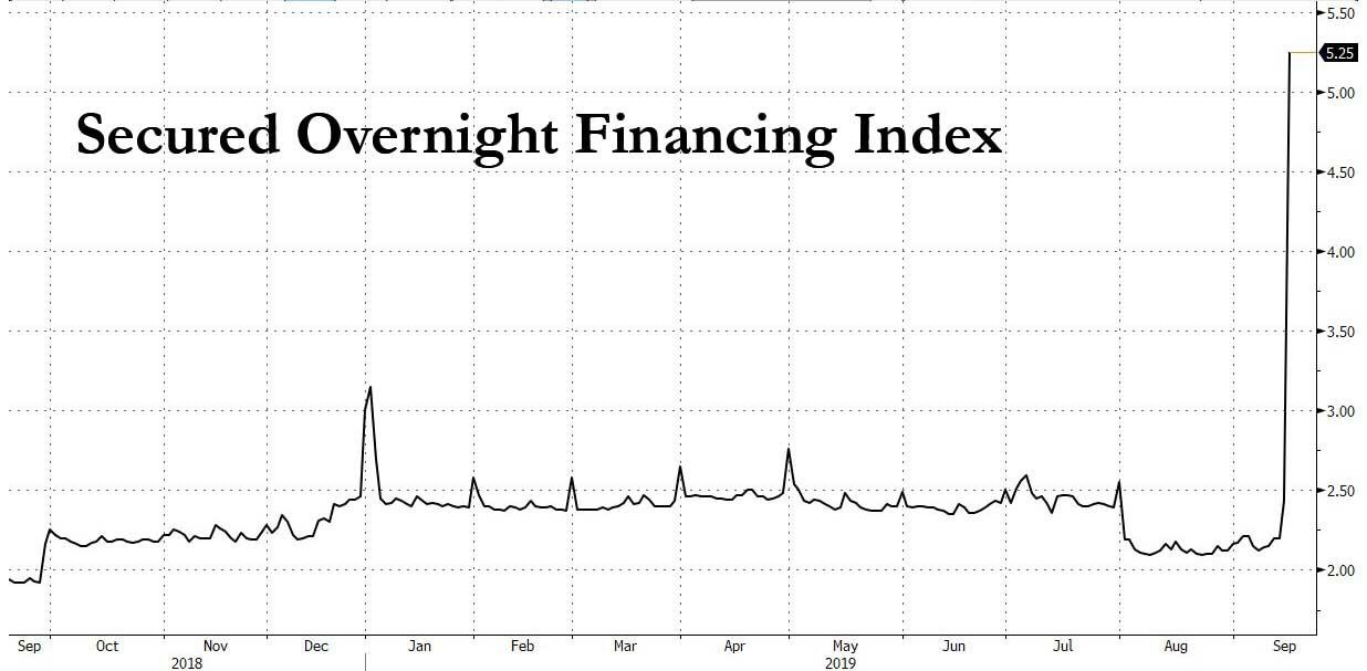 Второй, «SOFR», переместился на 282 базисных пункта, на рынке, где люди, как правило волнуются при движении даже на 20 базисных пунктов. Движение SOFR, по крайней мере, указывает на то, что мегабанк или несколько мегабанков, не могли получать деньги от других банков. Последний раз подобный ход событий наблюдался во время краха Лемана.