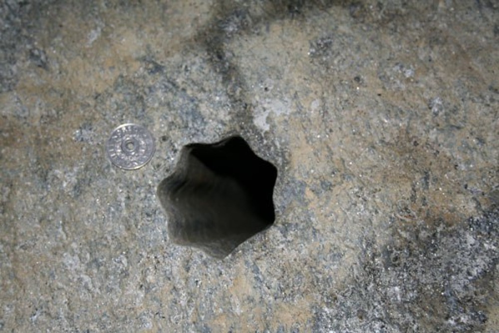 Отверстие было найдено строителем, работающим над удалением битов из горы, чтобы освободить место для строительного проекта. После того, как он прорыл пару метров в горе, вырубая большие куски скалы, он заметил странную звездообразную дыру в двух валунах.