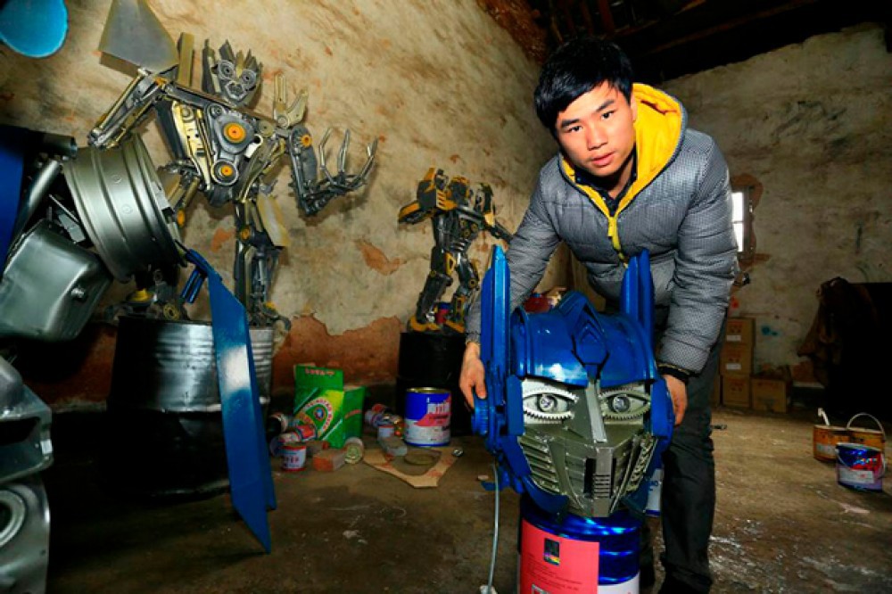 В свое время франшиза «Трансформеры» наделала много шума и обзавелась огромным числом фанатов. В Китае история о разумных роботах приобрела культовый статус и породила своего рода отдельный вид искусства: некоторые поклонники изготавливают копии персонажей из утилизированного металла. Один из самых успешных проектов по созданию трансформеров из мусора принадлежит фермеру по имени Жилин Ю и его сыну. На конструирование первой гигантской модели у семейного подряда ушло около трех лет. При этом авторы фигуры использовали исключительно металлолом и старый хлам со свалок.