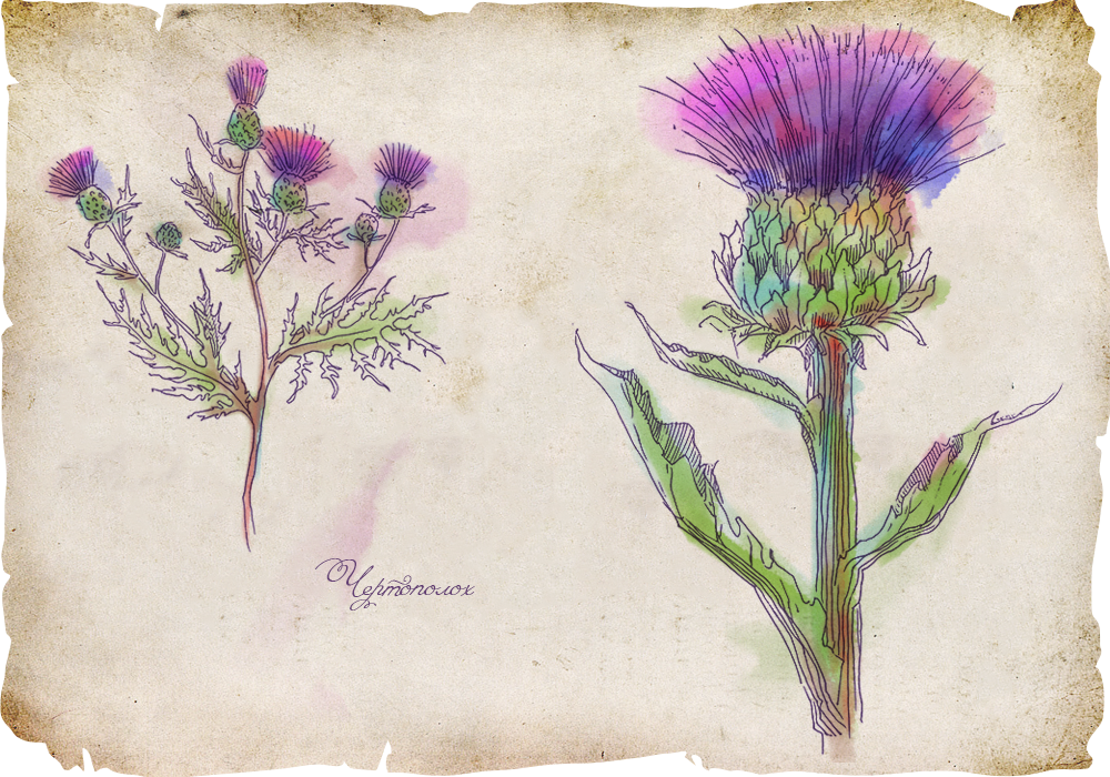 От нечисти оберегали и колючие сорные травы. Например, чертополох мог отпугивать чертей, успокаивал скорбящих о покойнике и уберегал людей от тревоги. Помогало растение интересным способом: скорбящего человека били не жалея колючей травой. Также чертополох варили с воском, чтобы получить «вощанку», которую вкладывали в ладанку и носили с собой как оберег. Траву клали в трещину над воротами или под крышу дома для защиты от нечисти, а чтобы сберечь скот от болезней, им окуривали хлев.