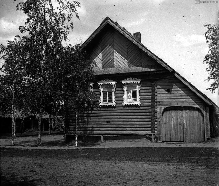Дом с резными наличниками. Русские. Новгородская обл., Шимский р-он, Бор д. (Новгородская губ.). 1913