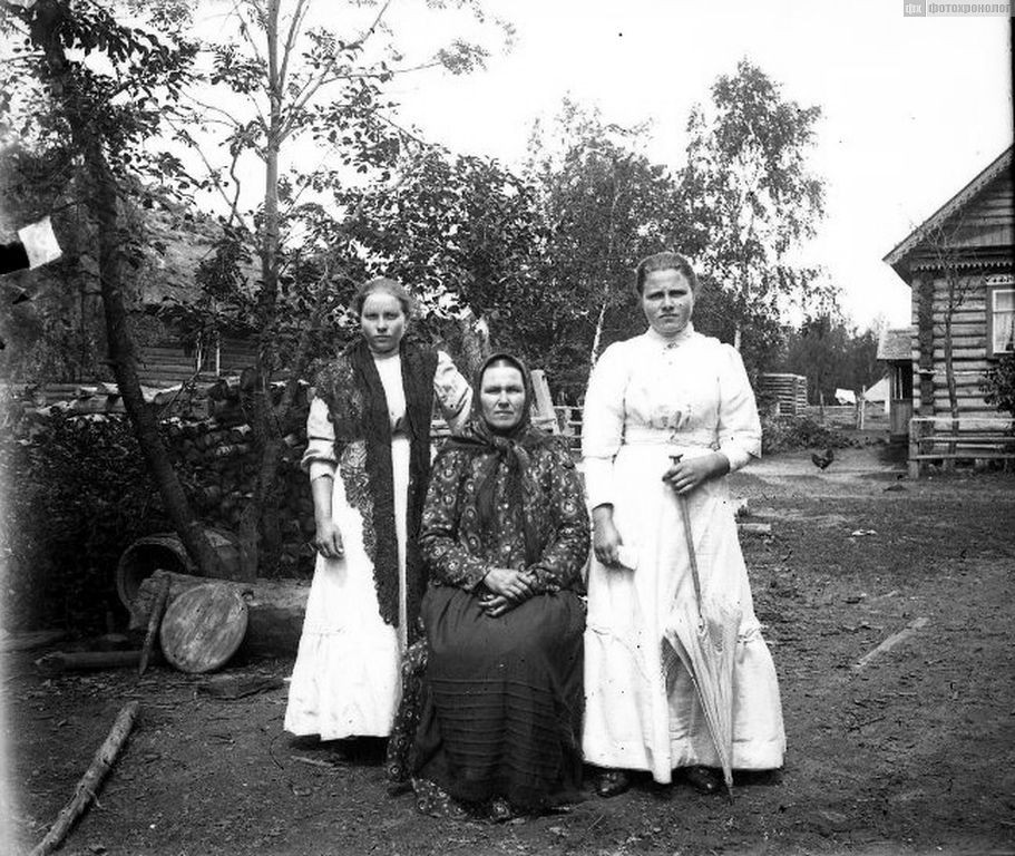 Групповой портрет женщин. Русские. Новгородская обл., Шимский р-он, Бор д. (Новгородская губ.). 1913