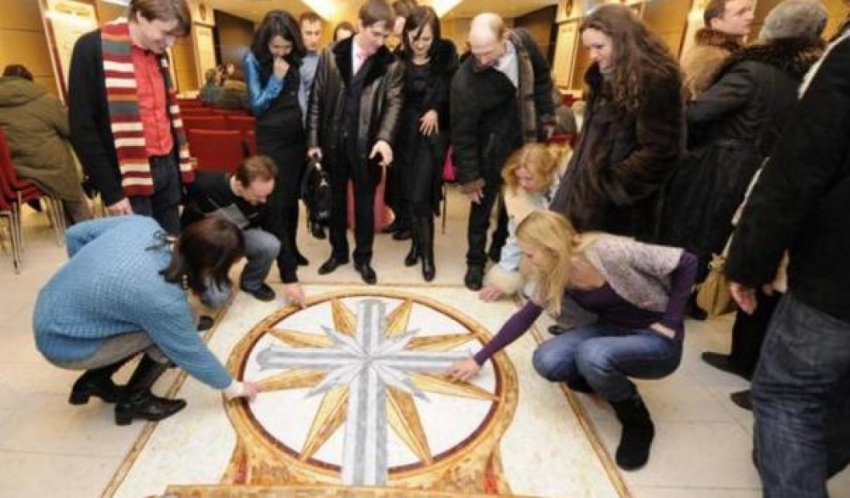 Девушка - лидер направилась в шестой коридор. Она непрерывно смотрела в монитор своего гайда, на котором мелькали какие-то указатели, тексты и картинки. Группа ровным строем следовала за ней. Шаг в шаг. В какой-то момент девушка споткнулась и чуть не упала. Все фаны в точности повторили ее движения. Наверное, это было бы очень смешно, но... и я, сам не зная почему, тоже машинально все повторил. Странно...