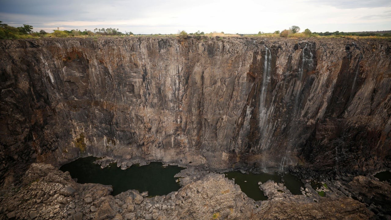 Водопад Виктория почти пересох: сейчас стекает только небольшая струйка