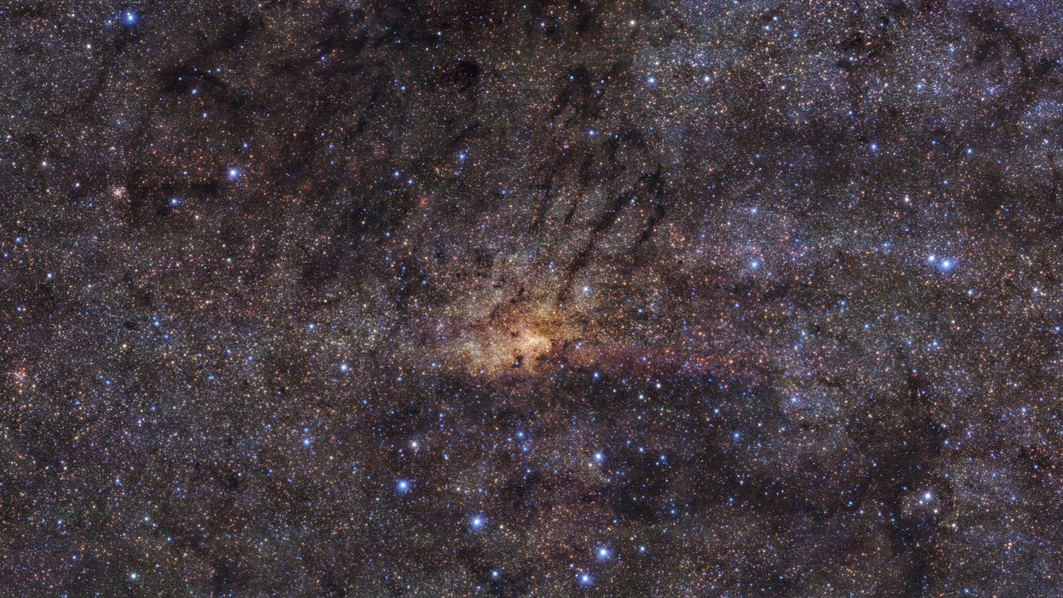 | Телескоп VLT, принадлежащий Европейской южной обсерватории прислал весьма интересные снимки центра нашей галактики. Фото в высоком разрешении дали возможность астрономам изучить более детально историю Млечного Пути, заметив древнюю вспышку звездообразования. В далеком прошлом случилось больше ста тысяч взрывов сверхновых, сообщает портал PLANETANOVOSTI.COM. Скорее всего, в нашей галактике больше не происходило событий подобного масштаба. По словам Франсиско Ногарес-Лара из испанского Института астрофизики Андалусии, в прошлом условия в центральной области нашей галактики были такими же, как в подобных структурах со вспышками звездообразования, в которых светила появляются со скоростью сто солнечных масс каждый год. Приблизительно 80% всех объектов в центре Млечного Пути были сформированы на этапе становления галактики. Большинство сверхмассивных тел погибло под воздействием эффектных вспышек сверхновых. Изучить центральную область весьма сложно, так как она скрывается за стеной пыли. Помогла в нелегком деле камера инфракрасного спектра HAWK-I, установленная в телескоп VLT. Ученые сумели получить снимки в высоком разрешении абсолютно всех тел, а также газа. Интересно, что в исследованном регионе имеется также чёрная дыра Стрелец А*, масса которой больше в четыре раза, чем у Солнца. |