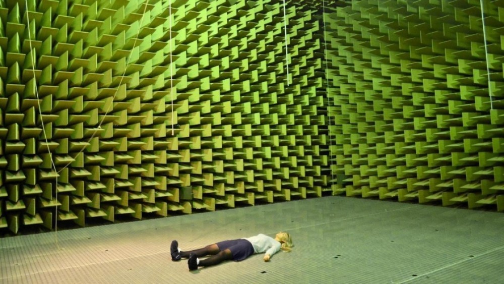 Я нашла безэховую камеру в техническом университете Дании к северу от Копенгагена. Сюда, в отличие от американской лаборатории, не пускают обычных людей. Но для меня, как журналистки, сделали исключение. Когда я приехала в университет, ассистент инженера Йорген Расмуссен повел меня в ярко освещенную комнату. Он наблюдал за мной во время эксперимента. Зайдя внутрь, я была шокирована ощущением тотальной пустоты — стояла просто гробовая, в самом прямом смысле этого слова, тишина. Было такое ощущение, будто у меня в ушах толстенные беруши. Когда я хлопнула в ладоши, звук немедленно исчез. Когда я попыталась что-то сказать, то обивка на стенах, потолке и под полом как будто высасывала слова у меня изо рта.
