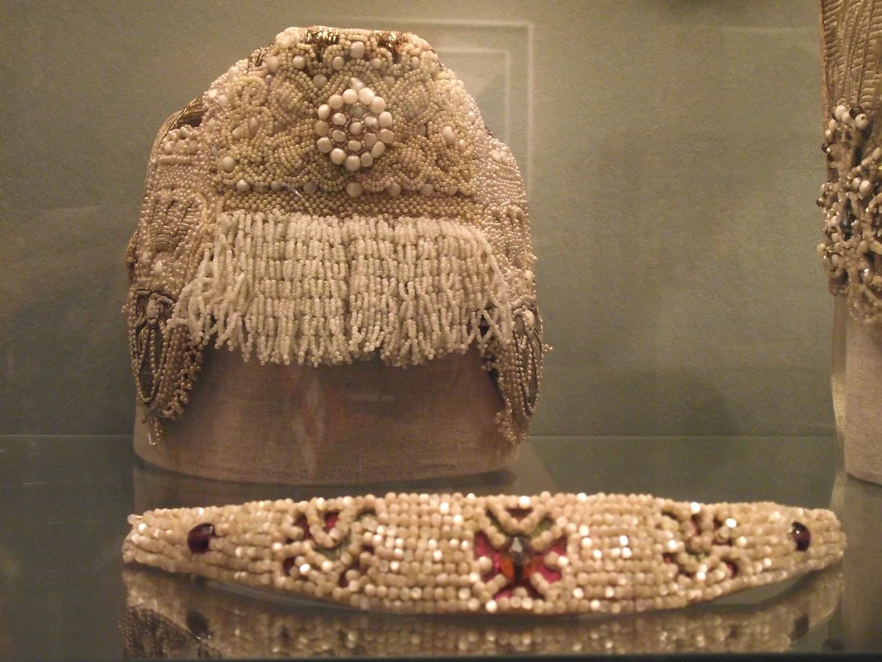 Экспозиция музея декоративно-прикладного искусства . Девичий головной убор