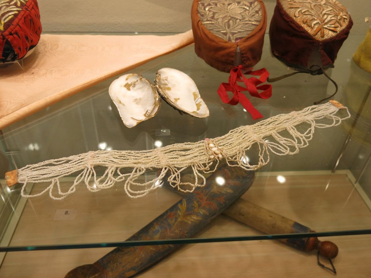 Раковина моллюска жемчужницы - источник жемчуга в реках Севера. Выставка От моря дышим. Традиционная культура Поморского берега Белого моря (Музей Кижи и Беломорский районный музей Беломорские петроглифы) 2016 г.