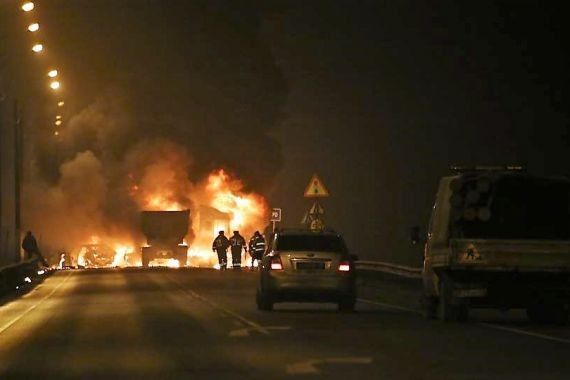 О пожаре стало известно ранним утром в воскресенье. К тушению привлечено 135 человек и 45 единиц специальной техники. Горят 250-литровые бочки с горючей жидкостью. Спасатели сдерживают дальнейшее распространение огня. В городе специалисты периодически забирают для анализа пробы воздуха. Превышений ПДК пока не выявлено.