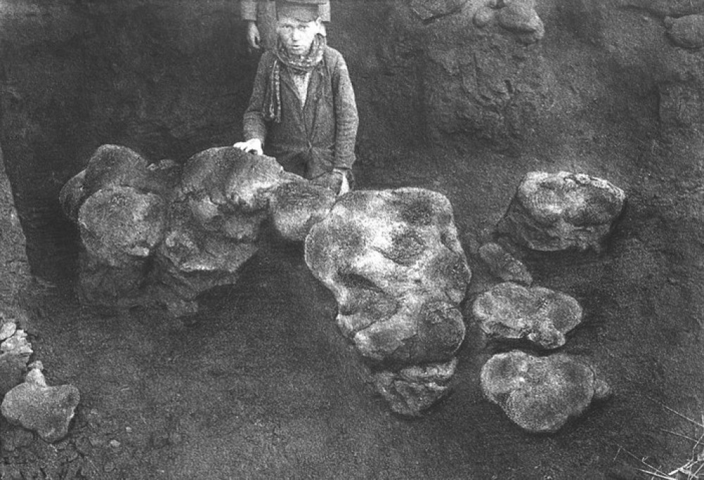 Верхний твердый слой песчаника для скорости подорвали порохом, и вскоре под лопатами и ломами показались конкреции. Амалицкий решил оставлять их на поверхности раскопа и не торопился убирать в ящики. Ему хотелось «составить понятие о взаимном их соотношении и о первичном залегании костей на дне бассейна».