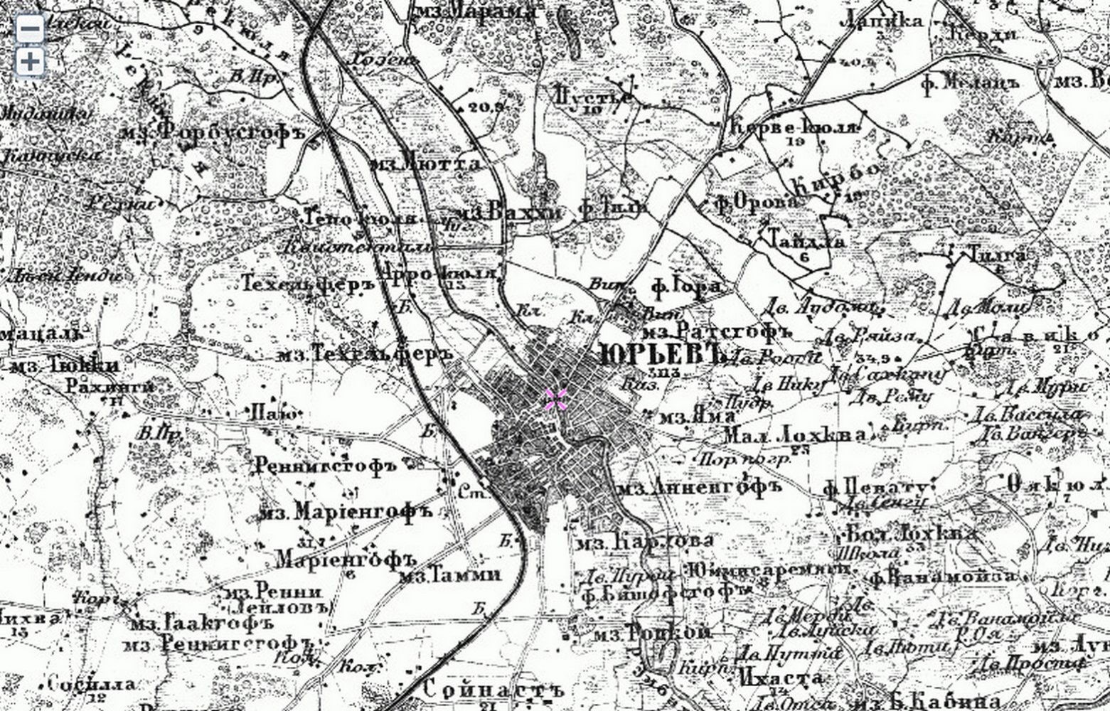 Но не это главное. Главное, как раз то, что автор плана указал пунктирной линией и подлинные границы допотопной крепости – звезды, что ставит жирный крест на всех заявлениях современных историков, утверждающих, что звезда изначально строилась в том виде, в каком она существует сегодня. Вне всяких сомнений, даже если бы не сохранился данный план, мы не могли бы поверить в то, что звезда изначально имела только пять бастионов. Как ни странно, визуализировать прежнюю географию Юрьева очень помогает совсем недавнее изображение: