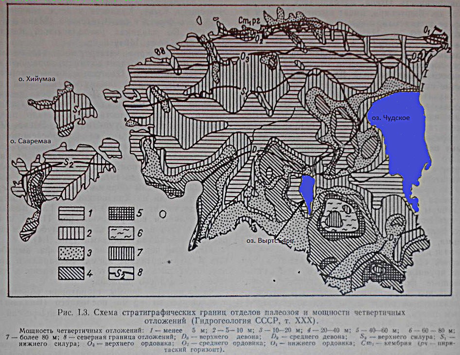 Здесь линия D2 показывает границу отложений верхнего девона, которая, практически, повторяет линию русла реки, указанной на карте Олафа Магнуса 1539 года.