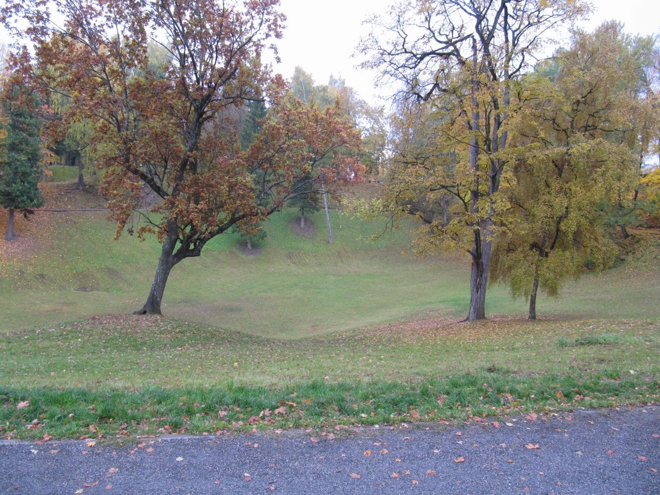 Диаметр воронки в среднем – 100 метров, глубина – около 10. Многие исследователи убеждены в том, что это след, оставленный при падении, метеоритом. Не берусь утверждать, что это не так, хотя наиболее вероятной версией считаю именно официальную: Это карьер, из которого брали глину для производства кирпича на строительство Петропавловского Собора. Глядя на эту кирпичную громаду, которая является одним из крупнейших соборов Ливонского ордена, как то не возникает особых сомнений в том, что кирпич изготавливали прямо на месте, из глины, добытой в карьере.
