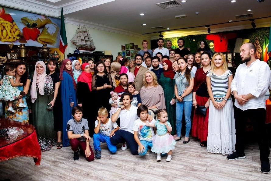 Мария Шукшина и Исмагил Шангареев в окружении представителей татарской диаспоры ОАЭ.