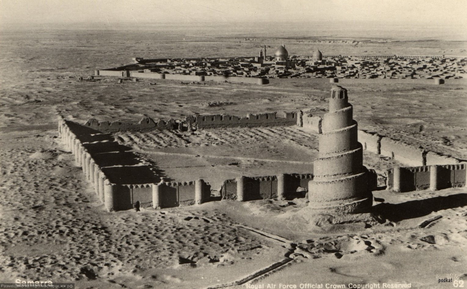 Один из немногих хорошо сохранившихся памятников градостроительной деятельности аль-Мутаваккиля (848-852). Это грандиозное здание площадью ок. 38000 кв. м вмещало до 80000 молящихся и было самой крупной мечетью мусульманской ойкумены. У северной стены мечети, на уровне ее середины, возвышается псевдо-семиярусный минарет аль-Мальвиййа (букв. «скрученный») – циклопическое сооружение, представляющее собой конус, помещенный на квадратное основание (ныне отсутствующий деревянный павильон, установленный на верхней площадке, был восьмым ярусом). Видимость ярусной конструкции создается внешней спиралевидной лестницей, ведущей от основания вверх, ширина которой (2.3 м) позволяла халифу въезжать на вершину верхом. Высота минарета от основания до верхней площадки составляет 53 м.