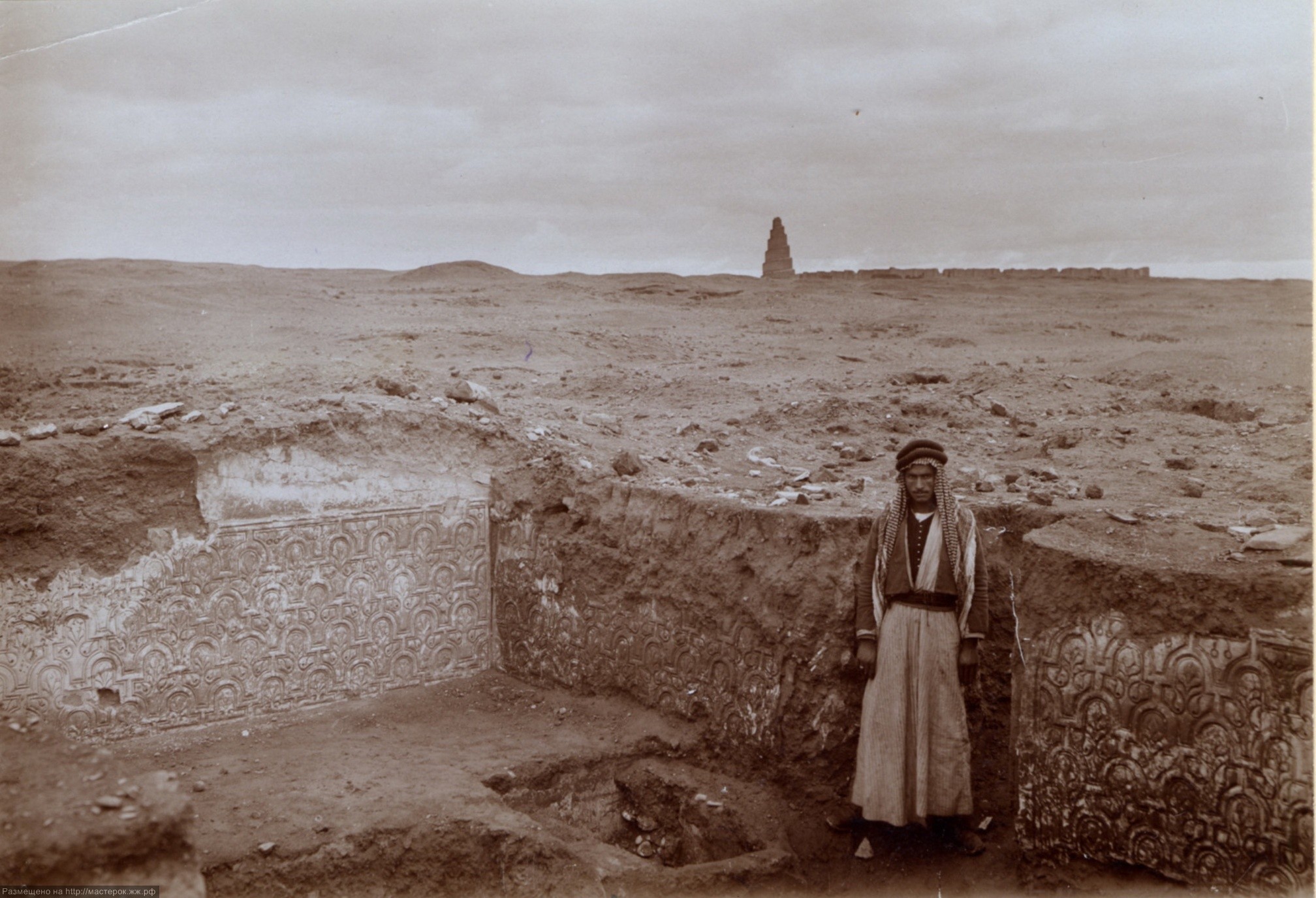 Кликабельно 1500 рх, Раскопки дворца халифов в Самарре, на заднем плане мечеть Мутаваккиля и ее минарет Малвия (ракушка).