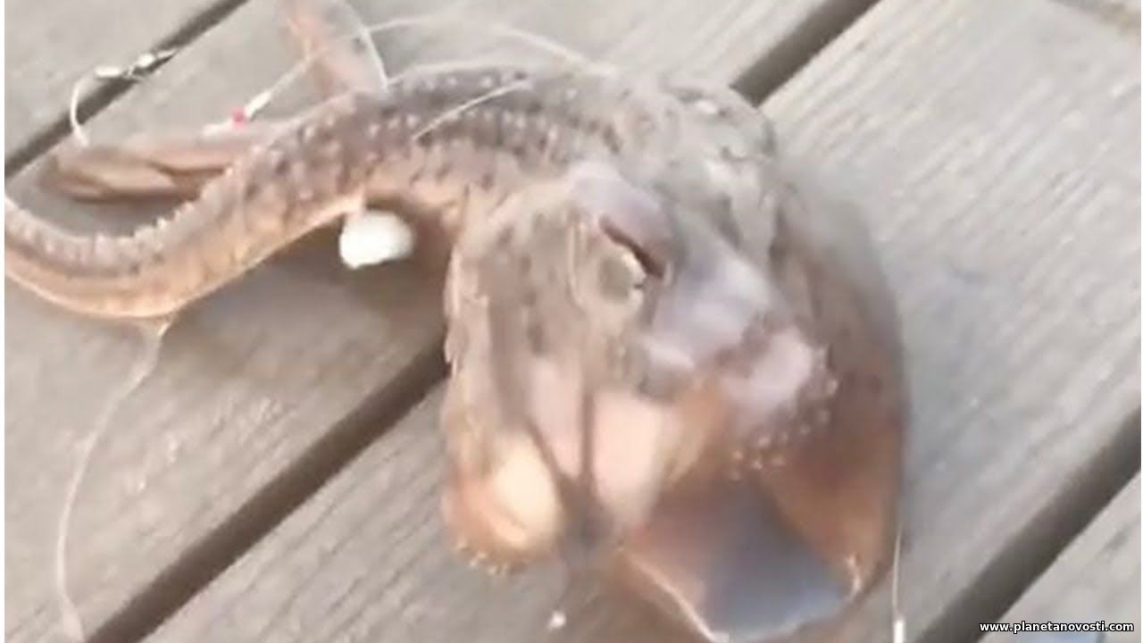 | Морское существо, которое очень сильно напоминает монстра, было идентифицировано после того, как по сети разлетелось странное видео. Зрители терялись в догадках, что это за существо и откуда оно появилось, сообщает портал WWW.PLANETANOVOSTI.COM. Странное существо якобы было выловлено рыбаком, но никакой информации о том, где именно это случилось, не предоставлялось. На видео видно, что животное имеет одно очень длинное щупальце и два коротких, которые больше напоминают придатки. Существо имеет серую окраску, вроде бы зевающий рот. На том месте, где должны находиться глаза, у него присутствовали жабры. На первый взгляд может показаться, что существо попало к нам с совершенно с другой планеты, но ученые в результате подтвердили то, что на самом деле оно с Земли. Эксперты, которые работают в благотворительном фонде Ocean Conservation Trust, назвали это существо «своего рода ветвью». Данный термин ранее относился к хрящевым рыбам, например, к скатам или акулам. Специалисты добавили, что некоторые комментаторы видео оказались очень близки к истине. Это мог быть скат, который скрутился, чтобы защитить себя от опасности. |