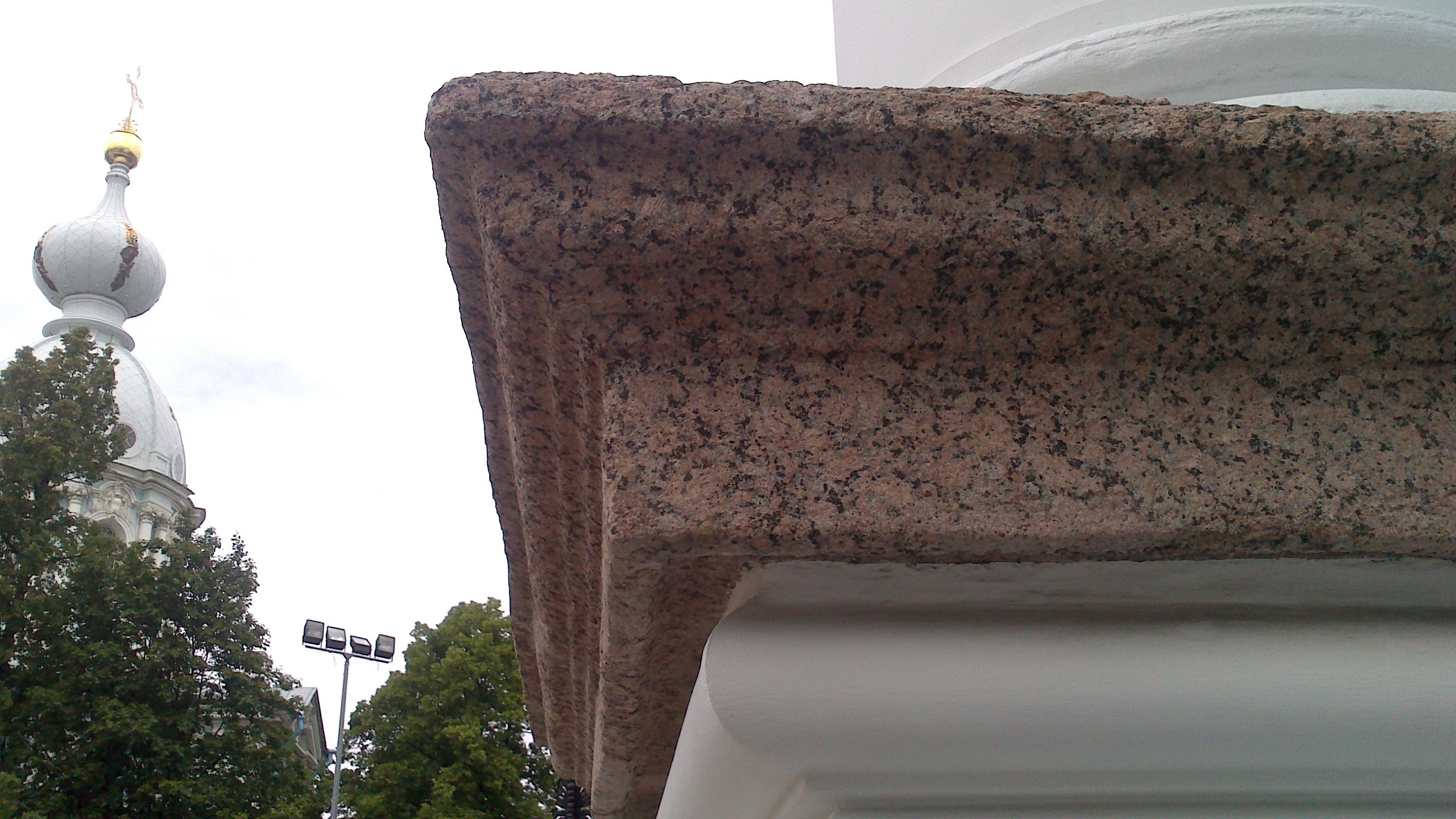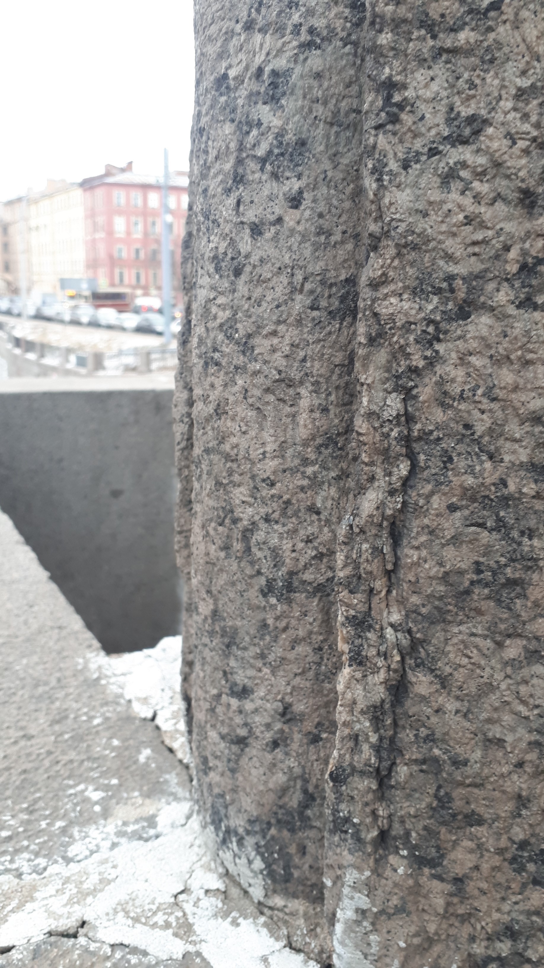 Вот его гранит вблизи. Возраст его примерно 120 лет. Эта часть гранита подвержена максимально агрессивному воздействию. Зимой лёд, летом ультрафиолет и вода, постоянный ветер. При этом сохранность гранита такова что трудно определить, таким или иным был изначальный уровень обработки камня. И есть ли на нем следы эрозии вообще. Фото кликабельно.