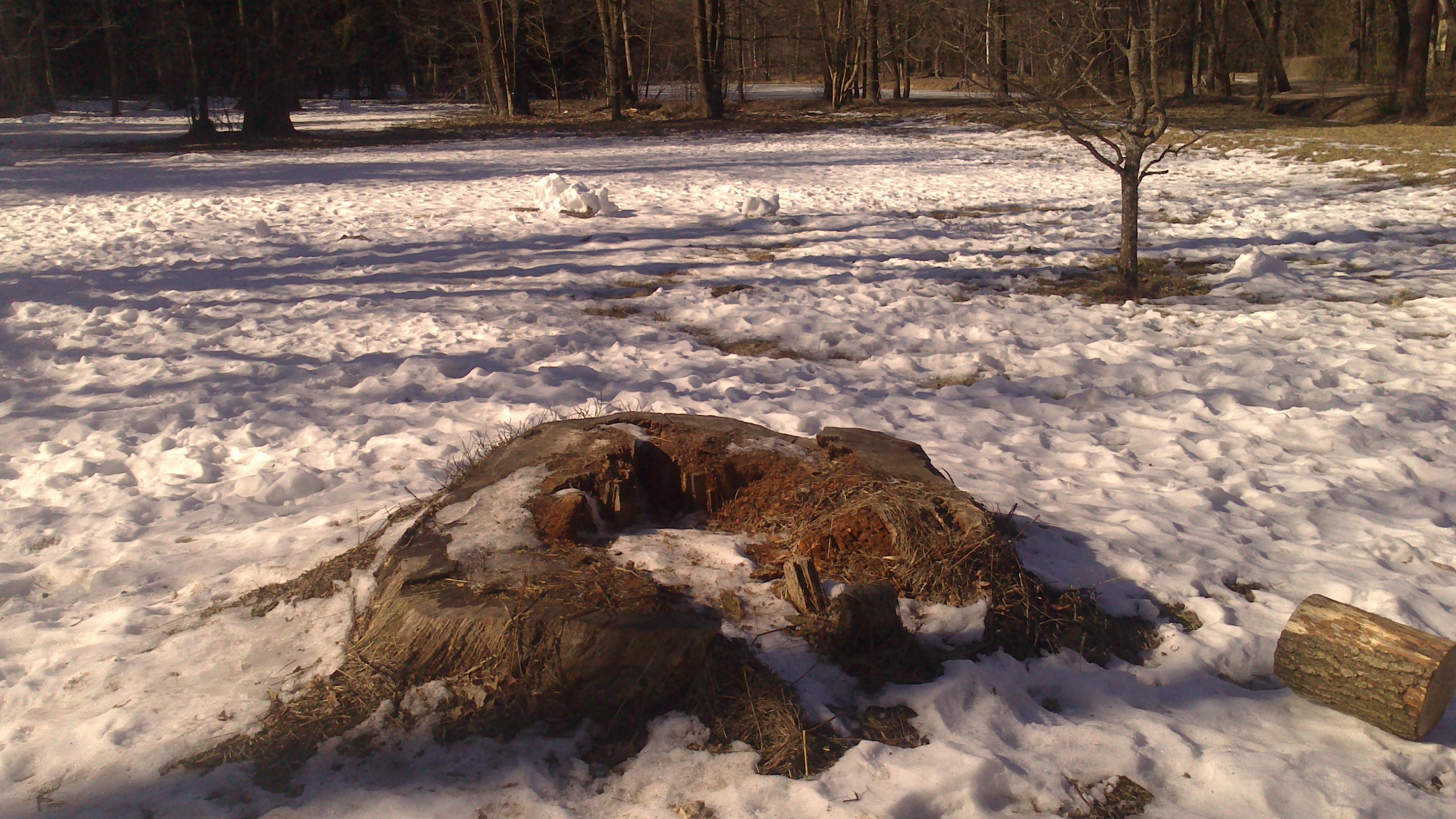 Однако то что этим дубам более 200 и тем более более 250 лет - миф. В Сергиевском парке есть два пня диаметром 150-160 см. Вернее были. Я несколько лет назад на одном интернет ресурсе написал про них и выложил фото. К своему удивлению, когда вернулся к этим пням на следующий год, обнаружил что пни разрушены. Не знаю, возможно совпадение. А возможно что это и чей-то злой умысел. Однако я успел посчитать кольца на этих пнях. Хоть уже и тогда плохо считалось ибо пни уже тогда были частично сгнившими, но в общем-то там получалось порядка 150 лет, с допущениями максимум 180 лет. Интересная особенность была замечена. Деревья первые 30 лет росли очень быстро, в среднем между кольцами было по 3-4 мм. Затем скорость роста резко снижалась, примерно до 1,5 мм в год, при этом были два периода в пару десятков лет каждый, при которых скорость роста снижалась до 0,5-1,0 мм в год. Быстрый рост дубов в начале жизни можно объяснить либо теплым климатом в то время, либо тем, что еще не подрос подлесок из быстрорастущих деревьев типа берёз или хвои, которые создали тень и тем самым снизили скорость роста молодого дуба. А может и то и другое вместе. Жалко что мне не удалось выяснить когда спилили эти пни. Это могло быть и 5 лет назад и 50 лет назад. Если бы это получилось узнать, можно было бы более конкретно строить предположения по климату в частности и общей истории в общем. Если вдруг у кого-то есть такая информация, укажите пожалуйста в комментариях. Вот фото уже разрушенного пня. Фото кликабельно.