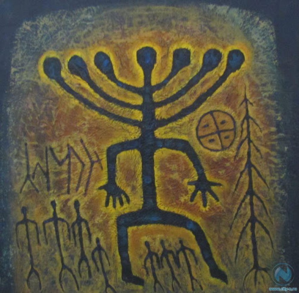 Увидев этот петроглиф я понял, что уже видел точно такое же божество у других не менее древних народов. Хакасскому "семиголову", как минимум 5000 лет и этот образ невозможно спутать, это и семиголовая гидра и менора, описанная в Библии и индийское божество и множество примеров у других народов древнего мира.