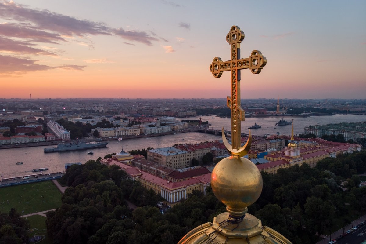 Продолжим. Раз уж Пра-Питер можно связать с Киевом, то и название Исаакиевского собора так же подлежит переоценке. Исаакиевский собор это не собор в честь святого Исаакия Далматского (был такой отшельник в сирийской пустыне через 300 лет после Христа), а собор в честь Исы Киевского. Кто такой Иса не трудно догадаться. У христиан он известен как Иисус, у иудеев как Иешуа, у мусульман как Иса. До конца 19 века Иса (Иисус) и Магомед были двумя равнопочитаемыми пророками у христиан и магометян (мусульман). На шее крест, в ухе серьга в виде полумесяца. Об этом у меня подробно изложено в статье о религии во второй части. И на кресте Исаакиевского собора мы видим крест и полумесяц. До конца 19 века (а формально до 1905 года) в храмы на куполах которых был знак полумесяца был разрешен вход магометянам (мусульманам) для исполнения культа.