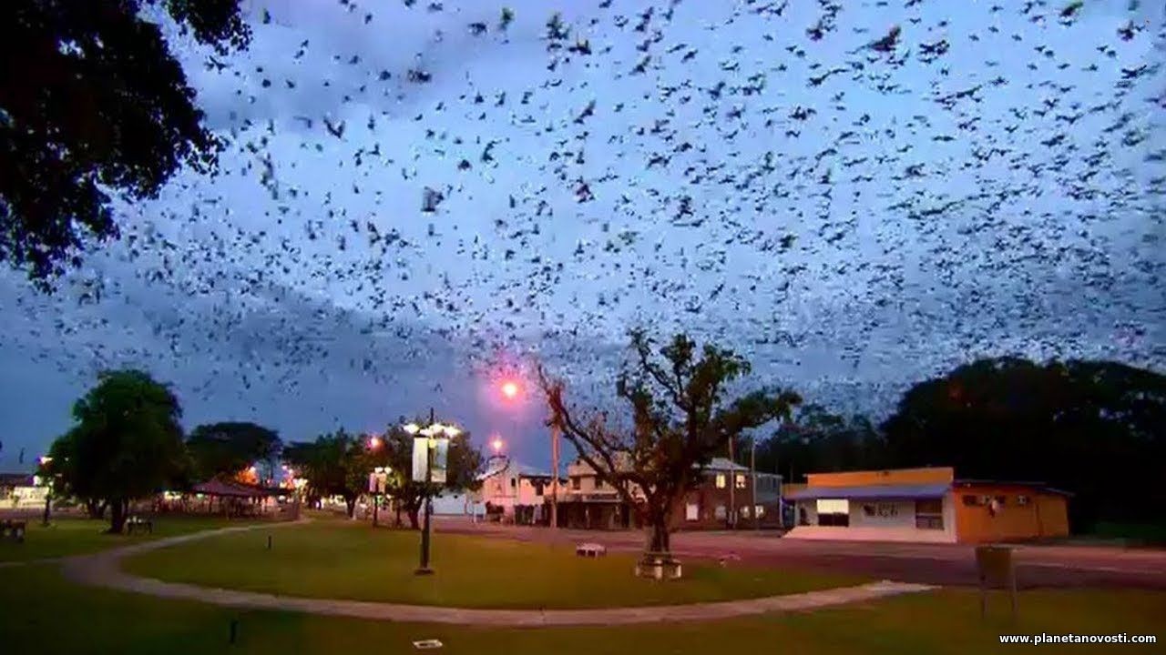 | Еще месяц назад жители Австралии и животные страдали от пожаров, градов, пыльных бурь и наводнений. Сегодня же пришла новая напасть – на город Ингем (север Квинсленда) опустилась стая летучих мышей. Пока что событие касается только одного населенного пункта, однако не факт, что беда не затронет соседние, сообщает портал WWW.PLANETANOVOSTI.COM. Местные журналисты как-то посчитали, что мышей около 300 тысяч. Как им это удалось – загадка. Некоторые люди в борьбе с нашествием созданий пускают в воздух пули из своих дробовиков. Другие усердно молятся, так как верят, что подобное предзнаменует что-то страшное из преисподней. Летучие мыши – опасные создания, поскольку они активно переносят вирус чумы. Почему же эти существа покинули свои убежища? Вероятнее всего, из-за нарушения пищевой цепи. После пожаров многие животные активно ищут пропитание, они метаются между территориями. Сначала в подобных ситуациях страдают фермеры, а затем – обычные люди, которых одолевают те или иные вирусы. Нет сомнения, что летучие мыши способны заразить граждан. Чем закончится нашествие и когда, никто сказать не может. |