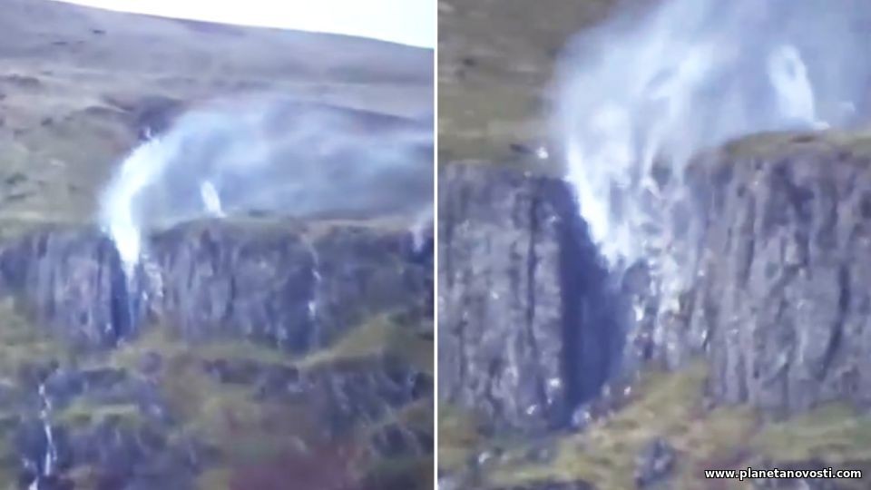 Ураган Сиара заставил водопад течь вверх: опубликовано видео