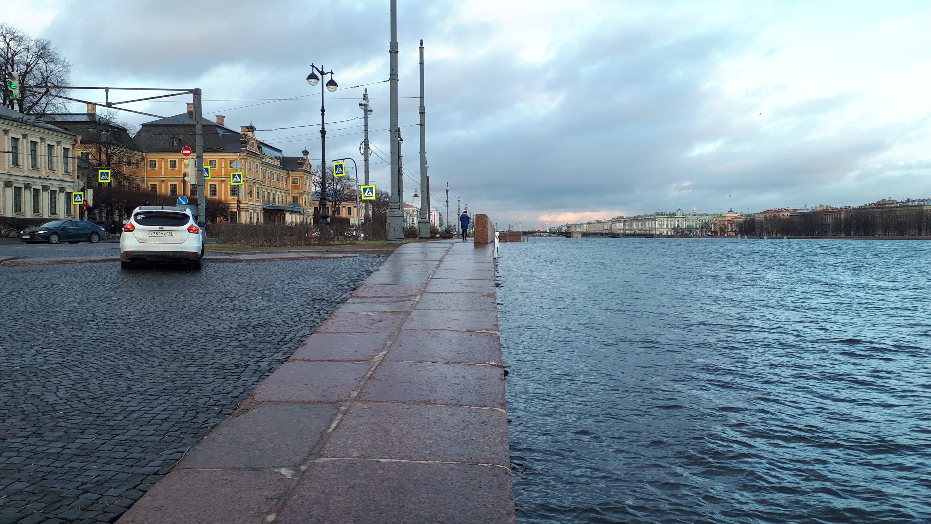 4. Лепет про то, что типа уровень Невы на моих фото не естественный, а завышенный не прокатит. На моих фото видно что волны на Неве почти нет, а раз нет волны, значит нет и ветра, то есть этот уровень воды нормальный. Летом, когда жарко и дождей если долго не было, вода может немного понизить уровень, до 20-25 см от того что на фото, но это никак не меняет сути. При том что как минимум в осенне-зимний период уровень воды в Неве именно такой, а в случае западного ветра еще и повышается. Пол метра туда-сюда это несколько раз за месяц случается, даже наводнением не считается.