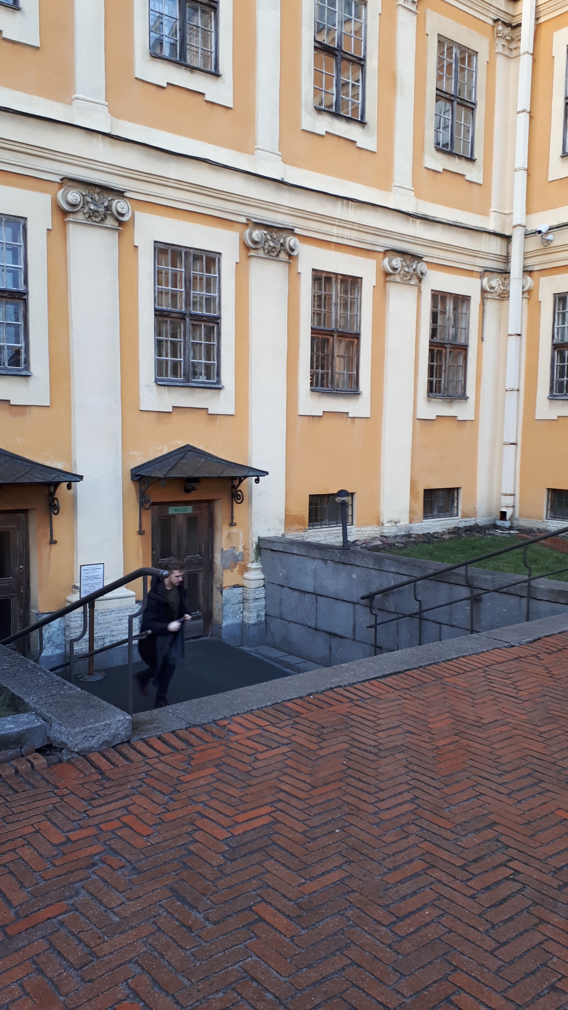 Теперь посмотрите на современное фото. Мы видим что нижние окна лишь чуточку торчат над уровнем земли. Официальная история нас уверяет, что всё нормалёк, просто повышали уровень берега Невы при строительстве набережной. И по-этому нижние окна оказались сейчас ниже уровня земли. Вроде логично и даже очень похоже на правду.