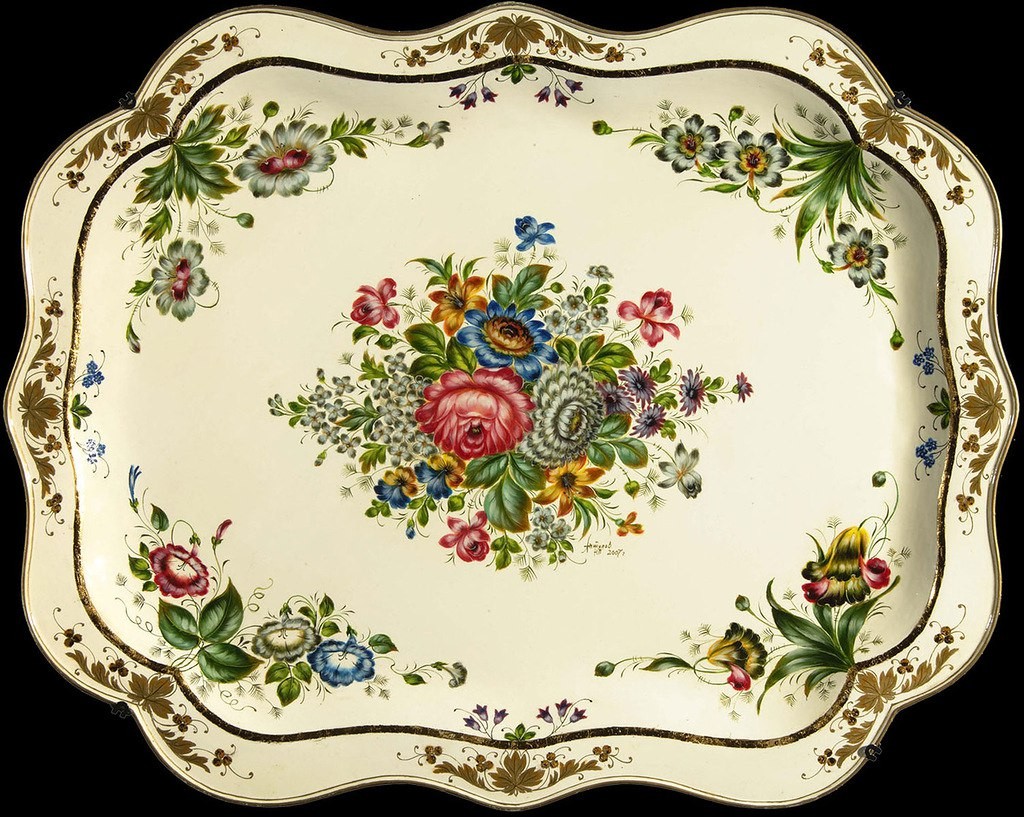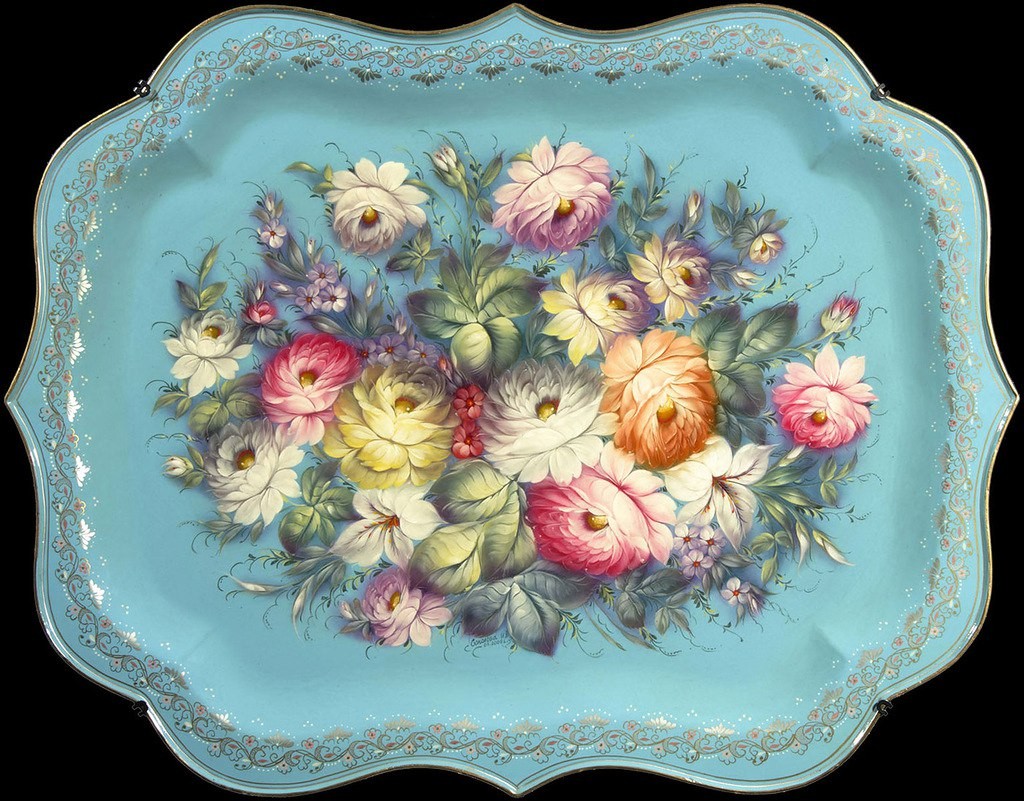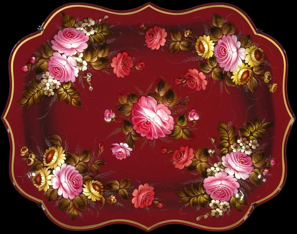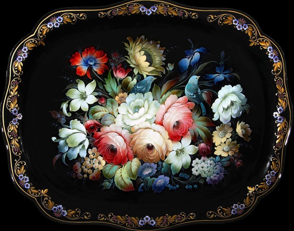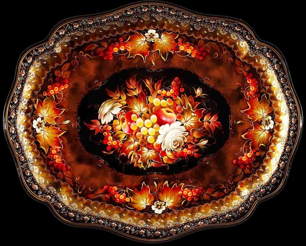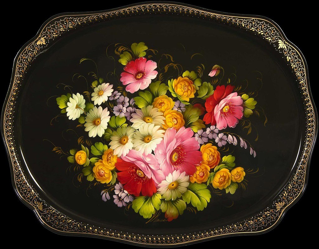 Промысел расписных металлических подносов возник в середине XVIII в. на Урале, где были расположены металлургические заводы Демидовых (Нижний Тагил, Невьянск, Верх-Нейвинск), и только в первой половине XIX века подносы стали изготавливать в деревнях Московской губернии — Жостове, Троицком, Новосельцеве и др. Скоро московский промысел стал ведущим. В настоящее время производство подносов с лаковой росписью сосредоточено в деревне Жостово Московской области и в Нижнем Тагиле. С первой половины XIX века мастерские по производству расписных подносов работали в нескольких деревнях Московской губернии: Осташкове, с. Троицком, Сорокине, Хлебникове и др. Жостовская фабрика ведет свое начало от мастерской (открытой в 1825 году) откупившихся на волю крестьян — братьев Вишняковых. В 1928 году несколько артелей, образованных на базе мастерских после революции, объединились в одну — «Металлоподнос» в деревне Жостово, которая в дальнейшем (1960 г.) была преобразована в Жостовскую фабрику декоративной росписи.