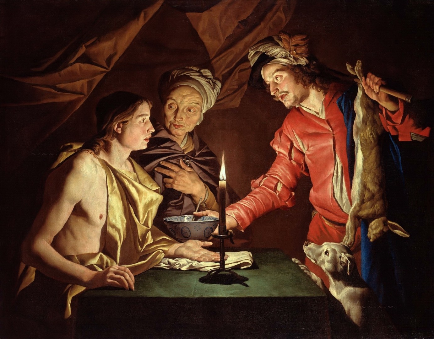 Маттиас Стомер. Исав продает право первородства за чечевичную похлебку. 1599