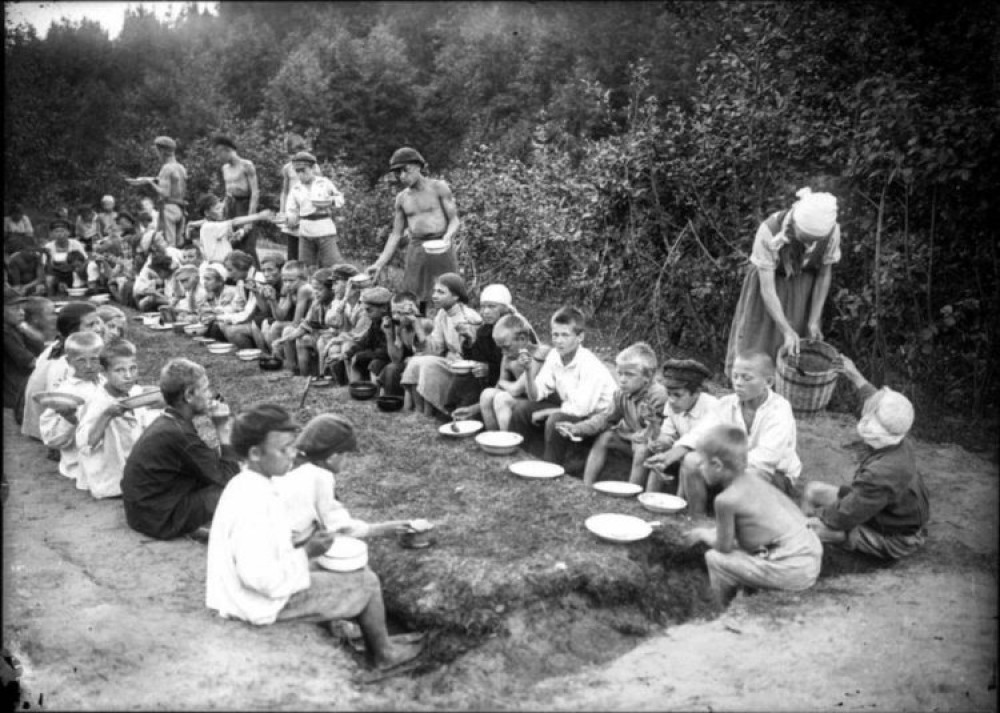 Заглавное фото: «Когда я ем, я глух и нем!» Обед в пионерском лагере. 1923 год.