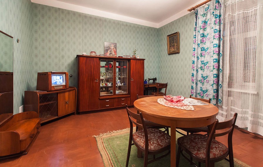 На стенах квартиры обязательно должны были быть дорогие (лучше несоветские) обои с полосочками и рисунком, на полу и стенах — ковры, а в сервантах и на стенах — предметы коллекционирования. Нормального рынка антиквариата в СССР не было, поэтому советские богачи собирали всякий хлам, который стал эрзацем антиквариата и считался "ценным" — скупался втридорога всякий хрусталь "богемия", по пятикратной цене покупались страшные люстры с висюльками, а по объявлениям в газетах разыскивались всякие старые ржавые буденновские сабли и сувенирные грузинские кинжалы — которые должны были изображать на ковре коллекцию оружия.
