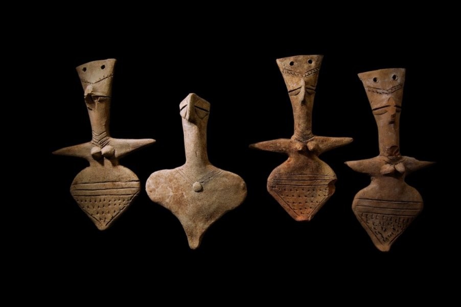 Амулеты из Гонур-депе. Эти глиняные фигурки были необходимой частью многих ритуалов. Как правило, их надевали на шею. На снимке: три женских амулета и один – без признаков пола.