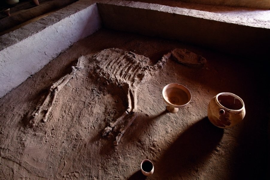 Погребение жеребенка – одно из немногих, оставленных в качестве музейного экспоната на раскопках в пустыне. Были найдены и другие захоронения животных.