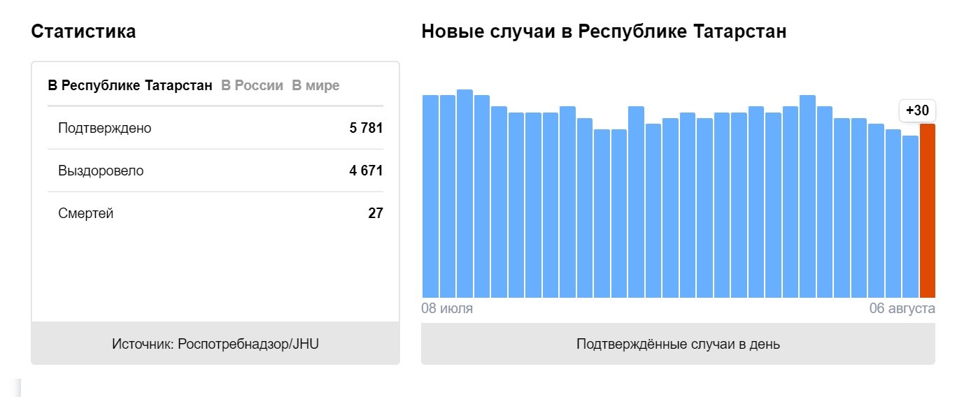 Важно отметить, что среди других крупных городов в Казани самый низкий прирост заболевших. Местные жители отмечают, что в городе хорошо соблюдают меры предосторожности: продавцы, владельцы заведений следят за тем, чтобы клиенты не скапливались в одном месте и носили индивидуальные средства защиты.