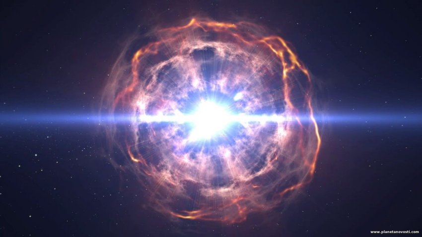 | Согласно выводам астрономов, красный гигант находится к нам гораздо ближе, чем предполагалось ранее. Перерождение Бетельгейзе в сверхновую может произойти через 100 тыс. лет. Тогда случится сильнейший взрыв, сообщает портал WWW.PLANETANOVOSTI.COM. Исследование было проведено доктором Меридитом Джойсом из Австралийского национального университета. Специалист более точно сумел выяснить расстояние от звезды до Земли, размеры Бетельгейзе, а также предполагаемое время жизни. Красный сверхгигант давно привлекает специалистов, а недавно заставил еще раз обратить на себя внимание, когда снизил яркость. Стоит отметить, что Бетельгейзе считается одной из самых ярких звезд на небе, однако уже два года подряд астрономы наблюдают потускнение. Ученые сделали выводы о возможном взрыве звезды в ближайшее время. Если первое затмение было связано с возникшим пылевым облаком, то второе – с пульсацией самого объекта. Для понимания физических процессов, которые управляют звездой, специалисты прибегли к гидродинамическому и сейсмическому моделированиям. Соавтор исследования Шинг-Чи Леунг из Токийского университета отметил, что пульсация звезды стала причиной волнового давления, которое представляло собой звуковые волны. В ядре Бетельгейзе в данный момент проходят термическая реакция гелия. До взрыва осталось еще много времени – примерно 100 тыс. лет. Звезда находится в 530 световых годах от нас. Это на 25% ближе, чем считали ученые ранее. Расстояние достаточное, чтобы в случае взрыва Земле ничего не угрожало. |