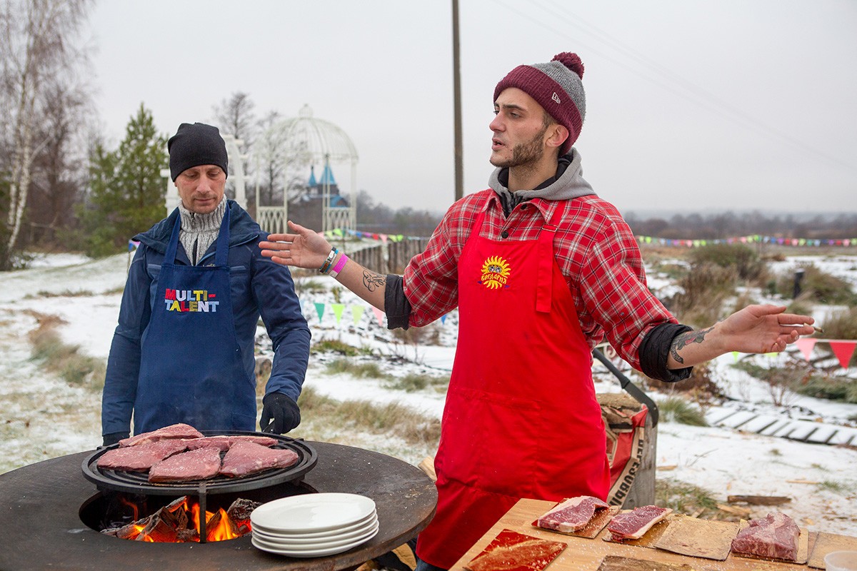 23-летний Василий проводит для гостей мастер-классы по приготовлению стейков из говядины и знает о них буквально все. «У нас все мясо - dry aged, сухого созревания, даже фарш, и их не нужно долго держать на огне, они готовы буквально за пару минут», - говорит он, проверяя специальным термометром-щупом готовность стейка. «После гриля мясо нужно завернуть в фольгу и оставить ненадолго, тогда будет очень вкусно». Из специй достаточно только крупной морской соли. Перец по желанию.