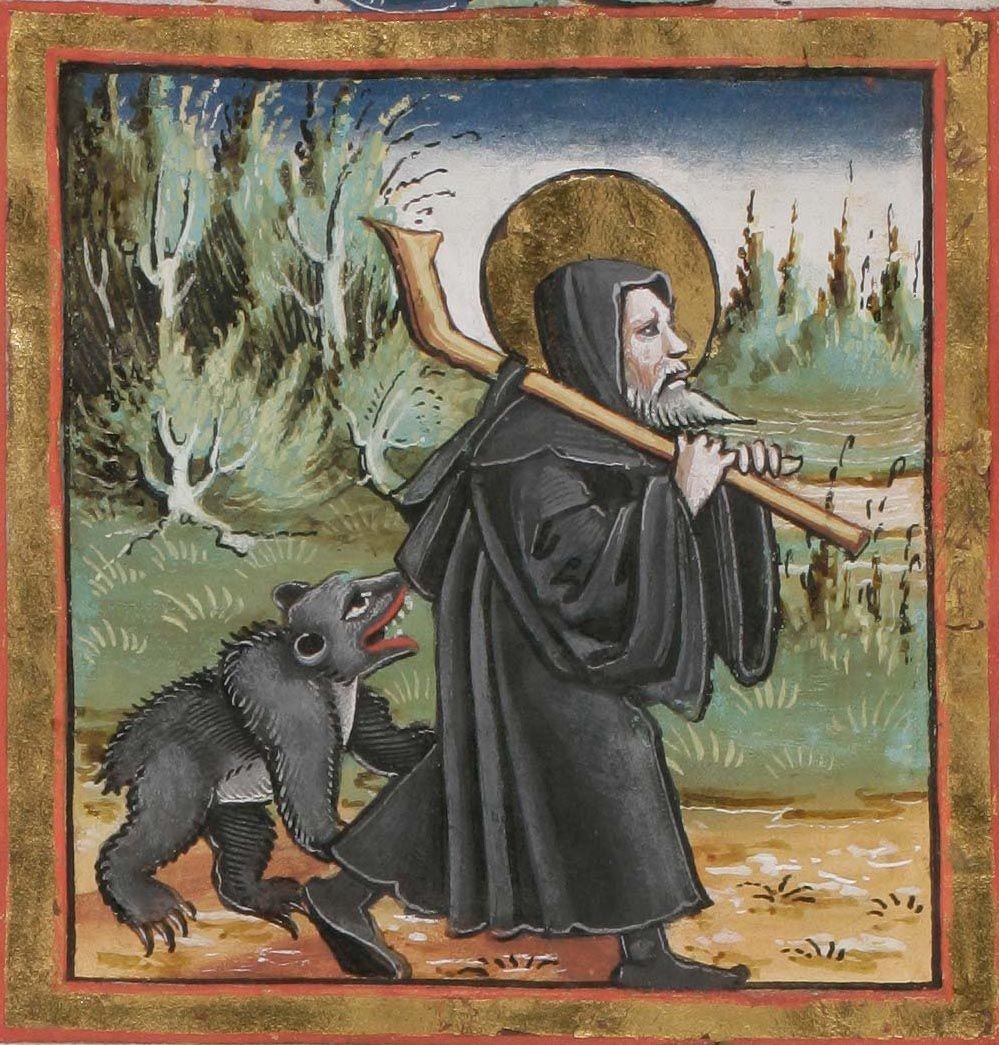 Агиографическая литература рисует медведя приручённым животным. В средневековых житиях можно встретить сюжеты, где главный герой одолел зверя, приручив его своими добродетелями и силой. Святые Корбиниан, Рустик, Ведаст, Аманд, Колумбан приручают медведя и убеждают его тянуть плуг или повозку, а святой Галл вместе со зверем соорудил скит в Альпах.