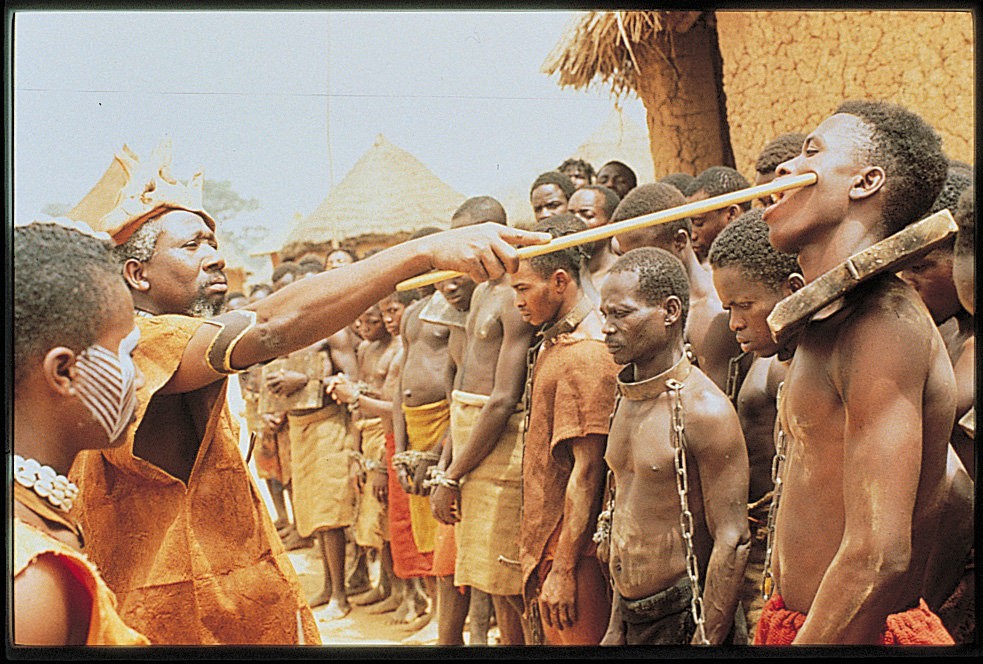 После клеймения и «большой работы плёткой» подавленных и окровавленных рабов немного кормили, связывали и вели на корабли. На пиру в честь дяди Дрейка вождь Гамбо принёс в жертву одного из пленников.