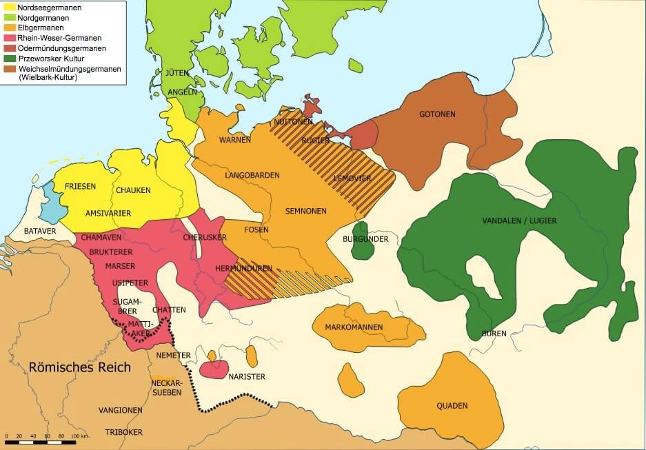 Карта расселения германских племён к 1-му в. н. э. Источник: wikipedia.org