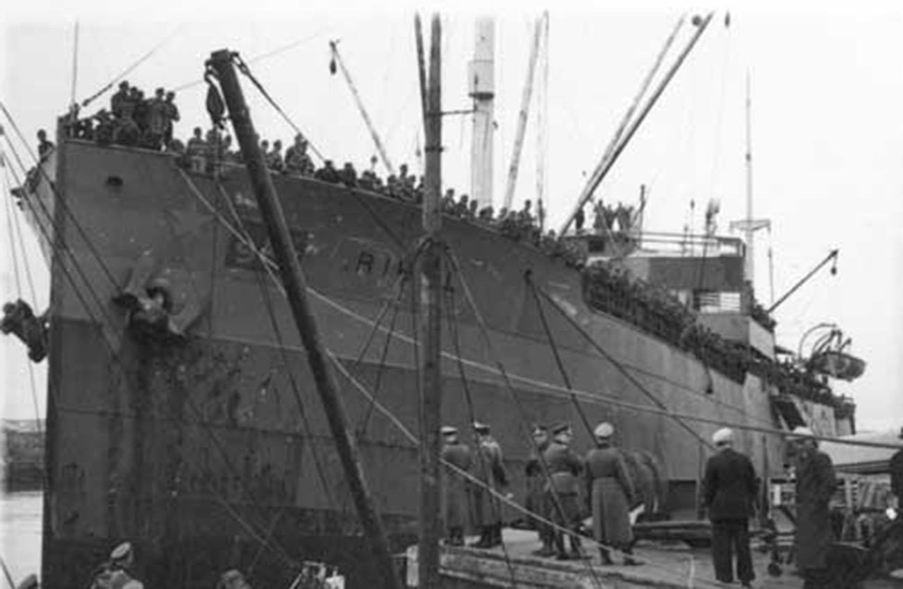 В свой злополучный ноябрьский поход «Ригель» отправился, однако, с совершенно другим грузом. На его борту под надзором почти 400 солдат находилось 95 немецких дезертиров и более 2200 военнопленных — по большей части военнослужащих Красной Армии, а также югославов и поляков.