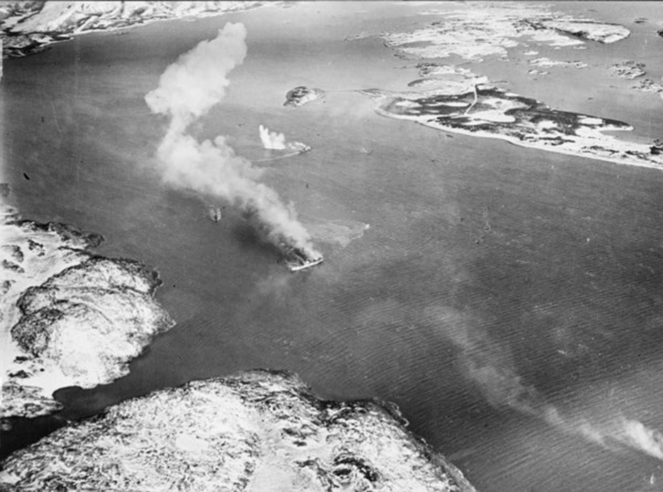 Люди заживо сгорали в огне или тонули в холодной воде. «Море и воздух были ледяными. Британцы продолжали стрелять как по тем, кто находился в воде, так и по тем, кто был на спасательных плотах», — говорил Шульц. Сам норвежец смог на таком плоту добраться до находившегося в нескольких сотнях метров пустынного острова Русейя. При этом его компаньонами в этом недолгом путешествии были немецкий солдат и советский военнопленный. По прибытии на место каждый из них пошел своей дорогой.