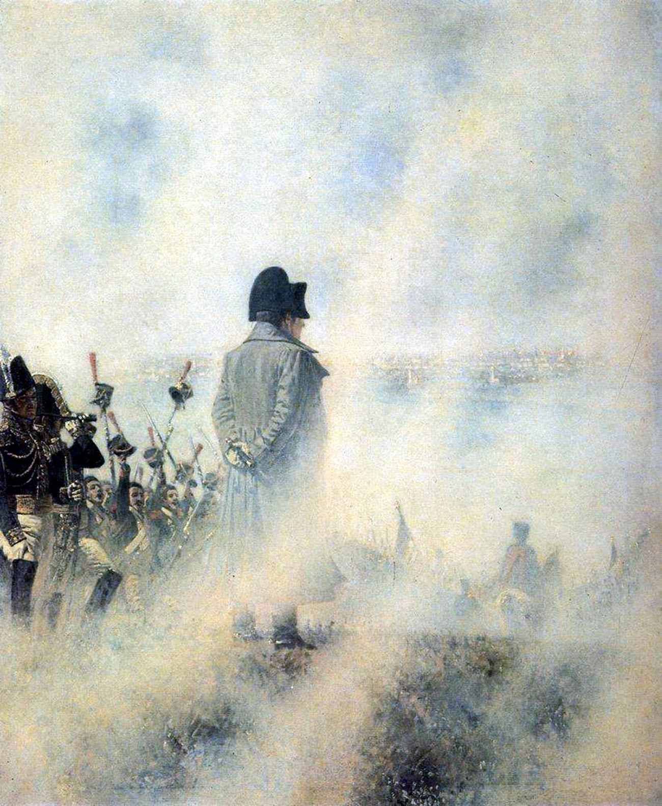 В эпоху Февральской революции 1917 года наполеоновский миф – восстановление монархического правления неким неизвестным до того героем из народа – возродился было в образе Александра Керенского: «И кто-то, упав на карту, // Не спит во сне. // Повеяло Бонапартом // В моей стране» – писала о нем Марина Цветаева. Русские, проживая свою революцию, не могли не ассоциировать ее с самой знаменитой революцией прошлого – Великой Французской, отсюда и всплеск интереса к образу первого консула.