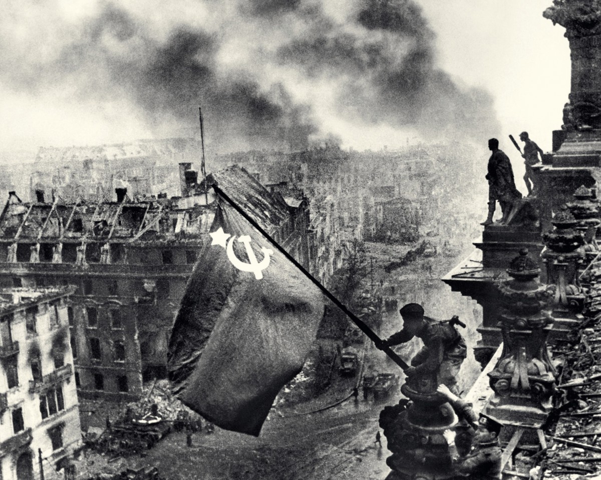 Евгений Халдей. Знамя Победы над Рейхстагом. Берлин. 2 мая 1945. Источник: Собрание Мультимедиа Арт Музея, Москва