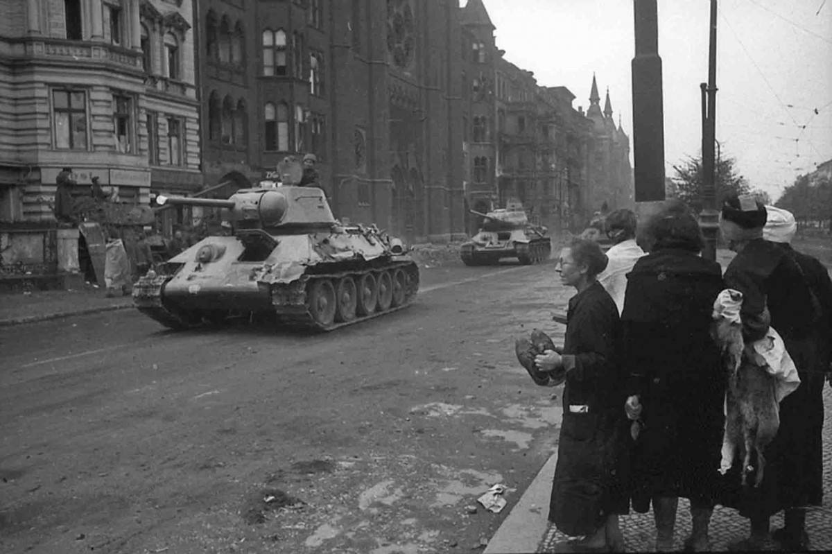 Евгений Халдей. Берлинцы смотрят на советские танки. Май 1945. Источник: Собрание Мультимедиа Арт Музея, Москва