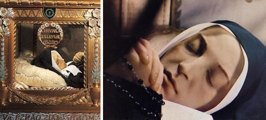 - В первый раз гроб извлекли в 1909 году и констатировали неприродное явление. Останки были нетленными после 30 лет нахождения в земле. Для Ватикана это послужило аргументом для канонизации;
